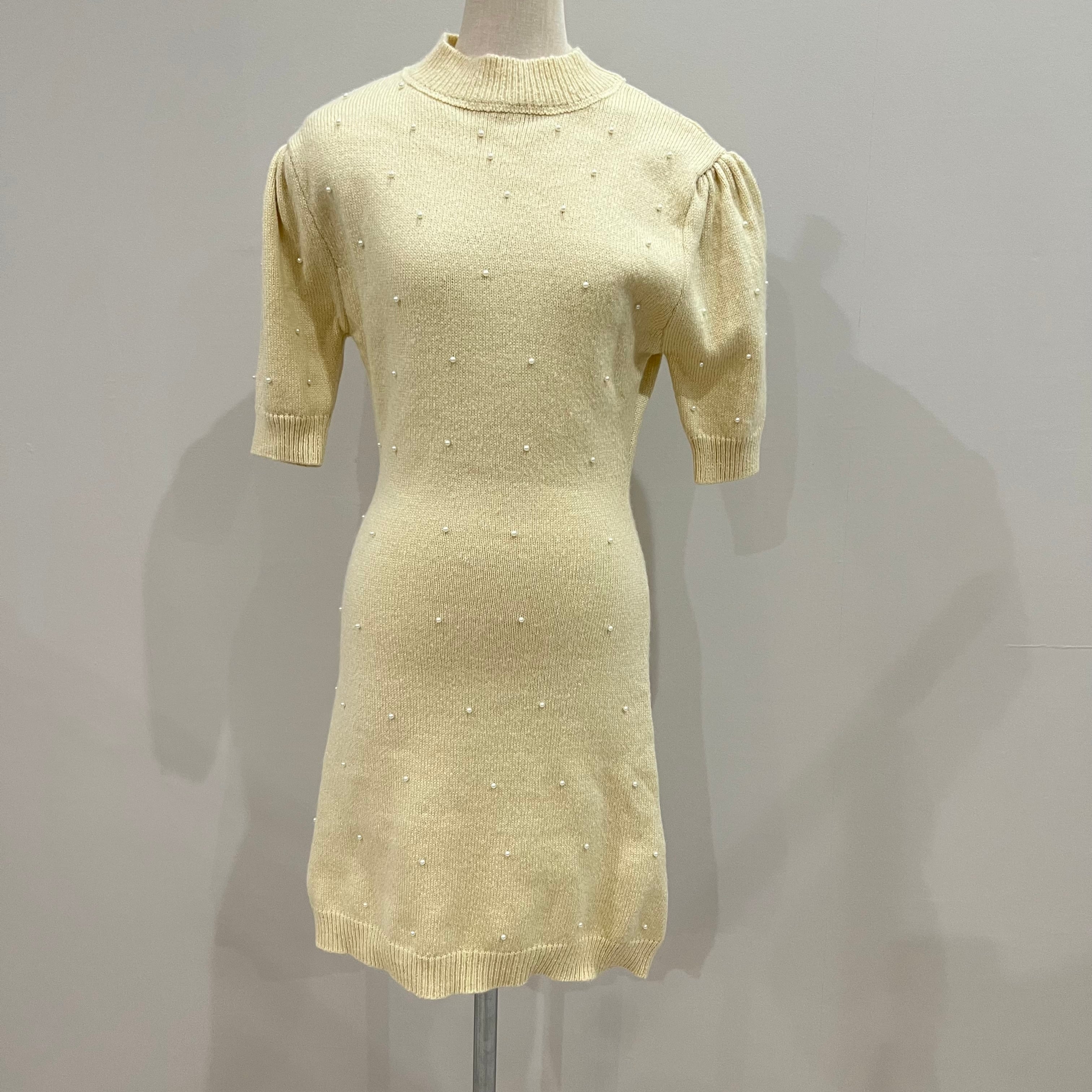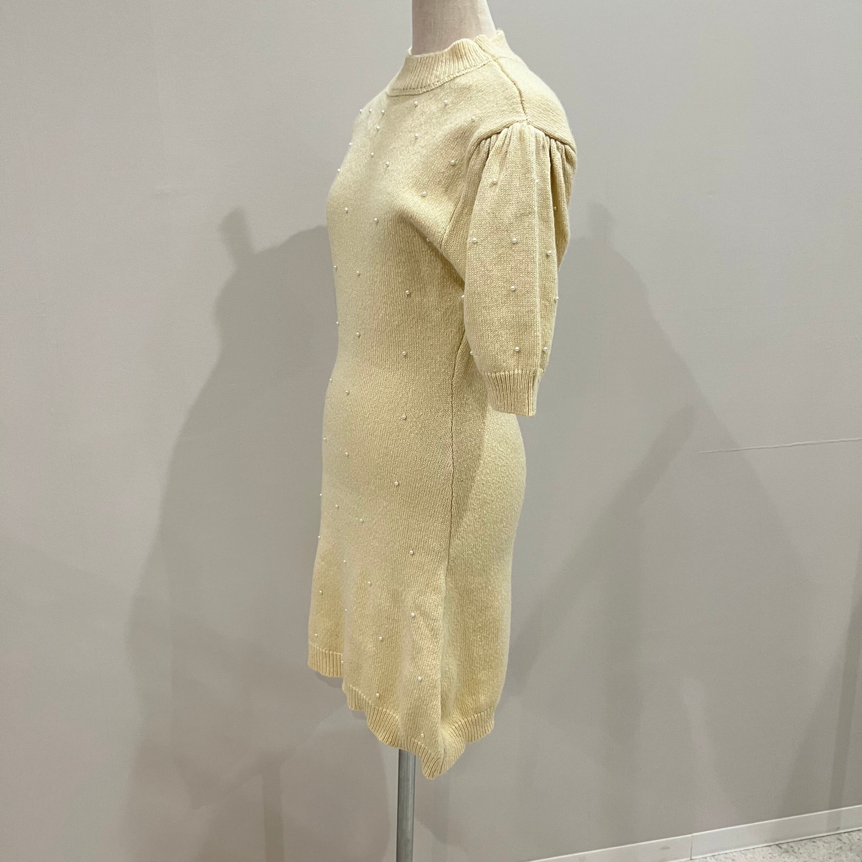 【SALE】パールニットパフスリーブワンピース